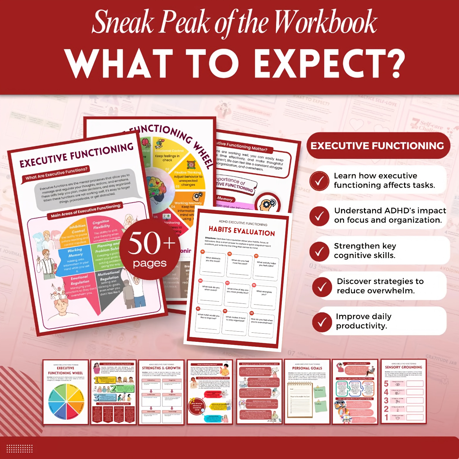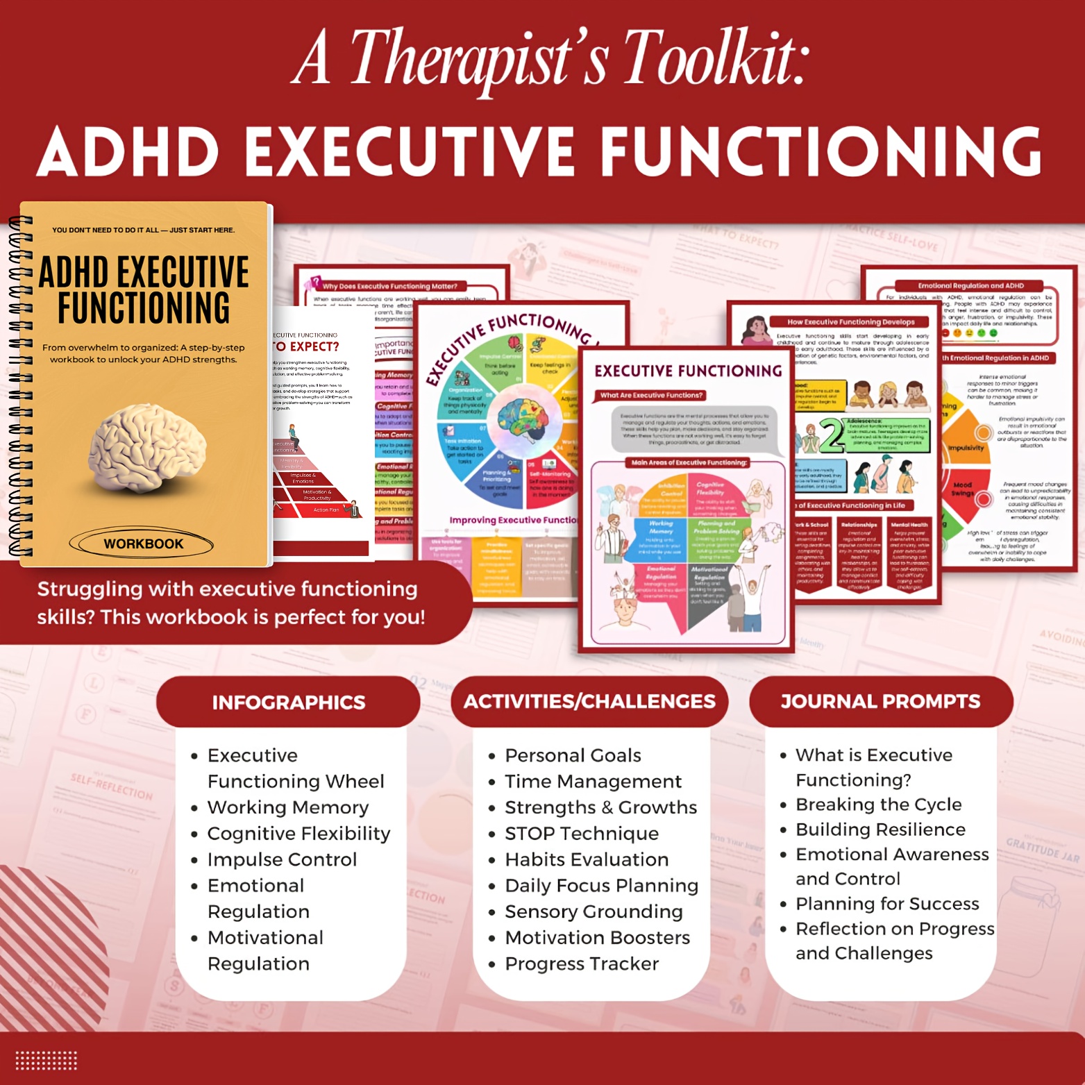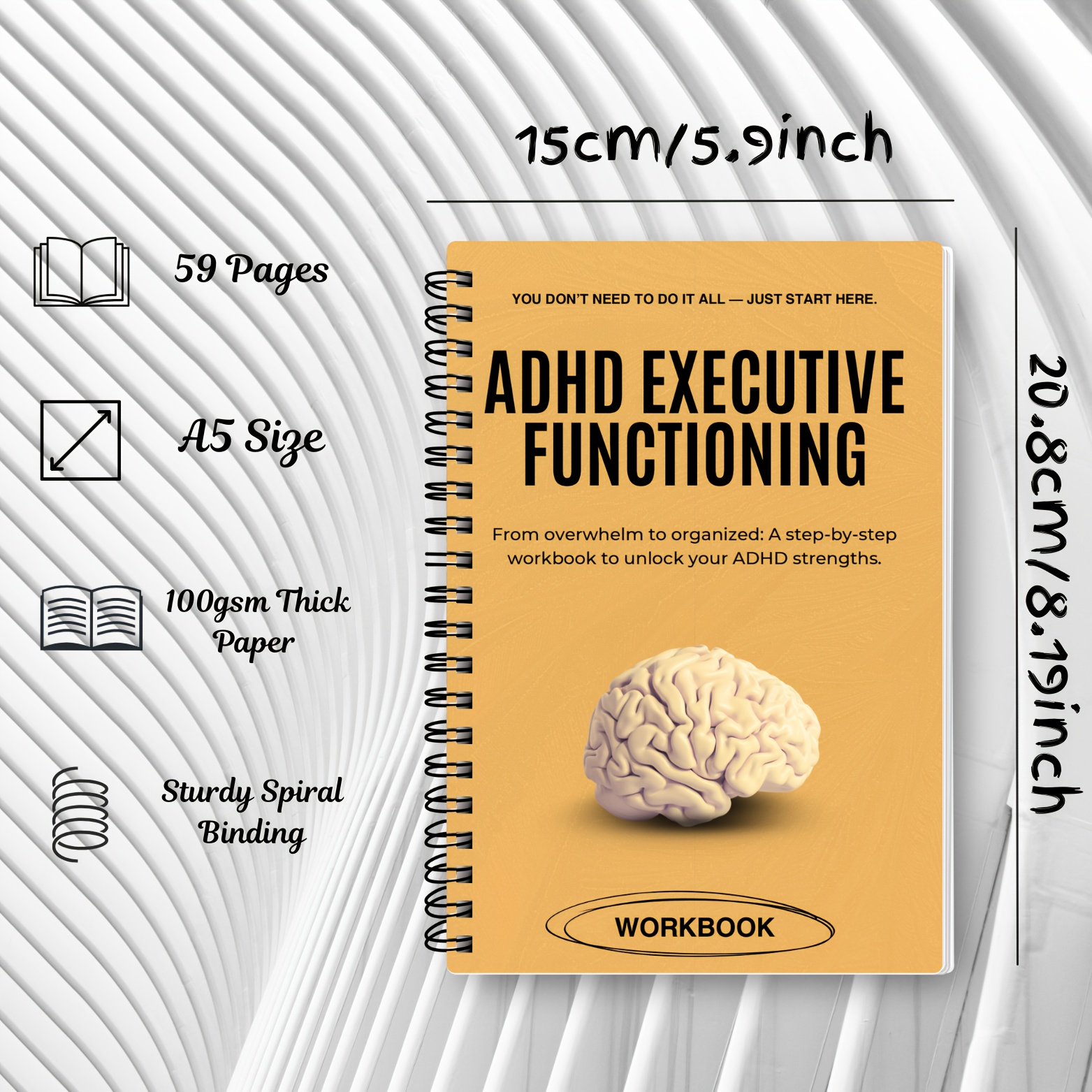 ADHD成年人执行功能练习册,日常收纳本和专注力笔记本,时间管理工具,情绪控制追踪器,认知行为疗法(CBT)活动表,任务管理,生产力和正念日记
