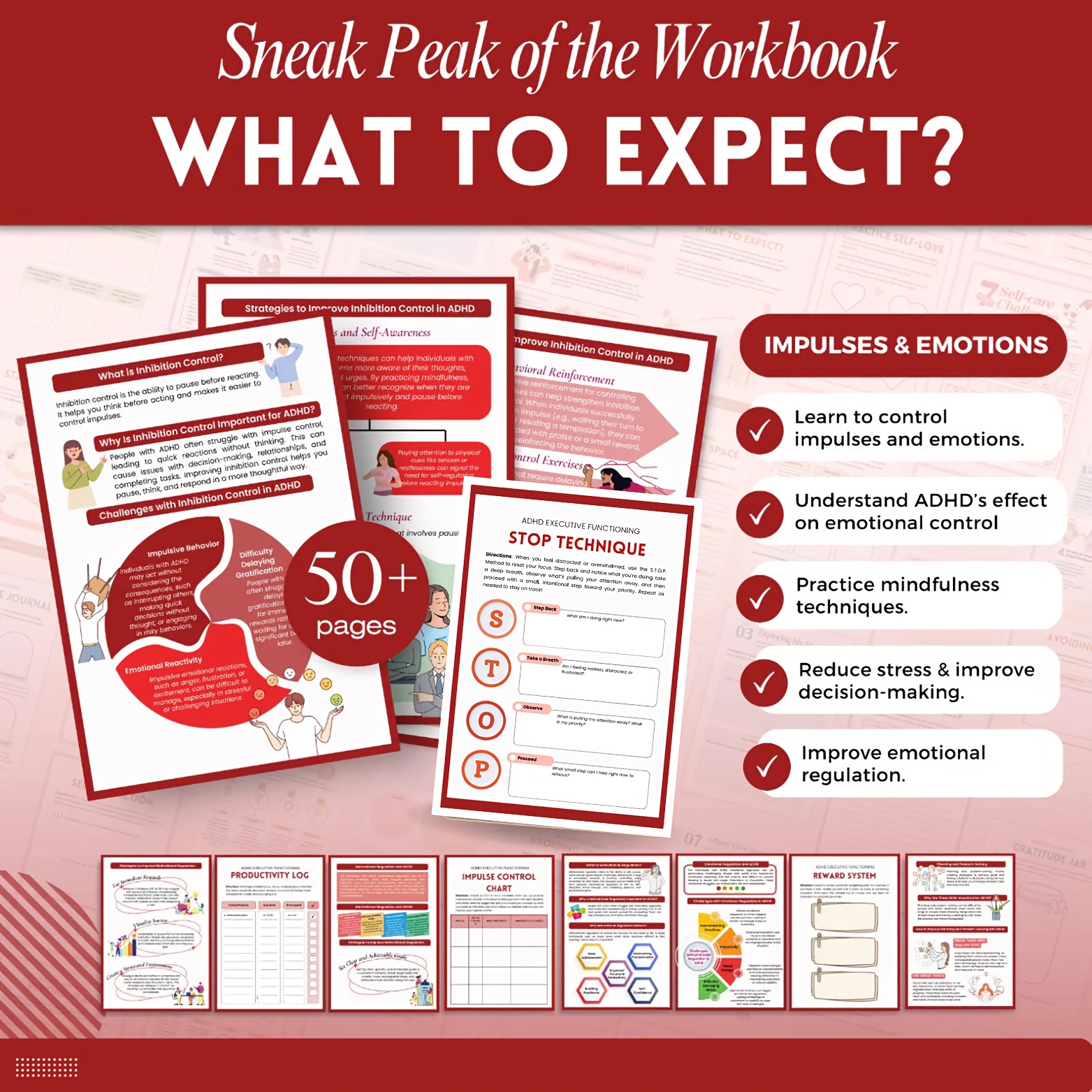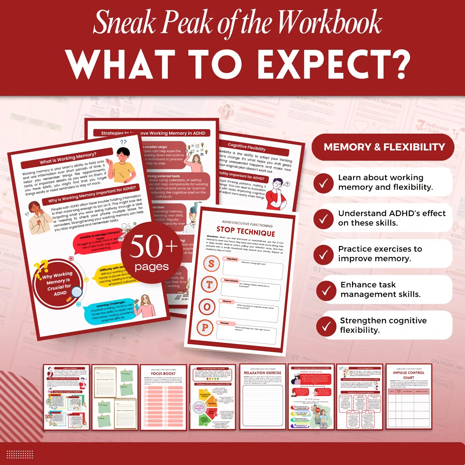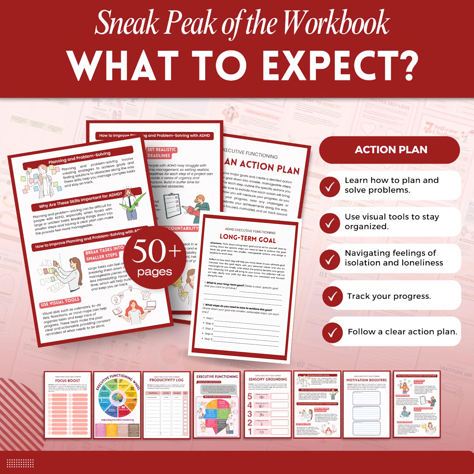 ADHD成年人执行功能练习册,日常收纳本和专注力笔记本,时间管理工具,情绪控制追踪器,认知行为疗法(CBT)活动表,任务管理,生产力和正念日记